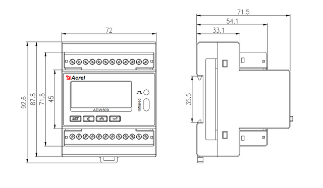 電表采用35mm導(dǎo)軌式安裝,ADW300、ADW300-HJ和ADW300W均可采用三相四線、三相三線接線方式。